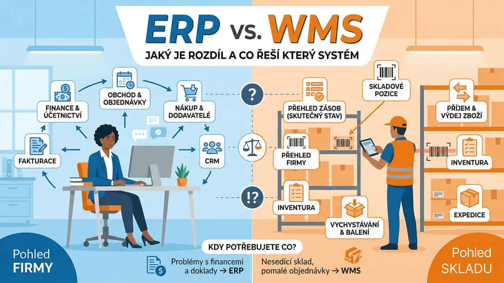 Některé firmy si myslí, že když mají ERP, mají tím vyřešený i sklad. Jiné naopak hledají WMS a přitom ve skutečnosti potřebují spíš širší firemní systém. Ve chvíli, kdy se ale provoz začne komplikovat, přestane být tahle nejasnost jen teoretická. Začne se promítat do každodenní práce, do chyb, do pomalého zpracování objednávek i do toho, že vedení firmy nevidí, co se v provozu skutečně děje.