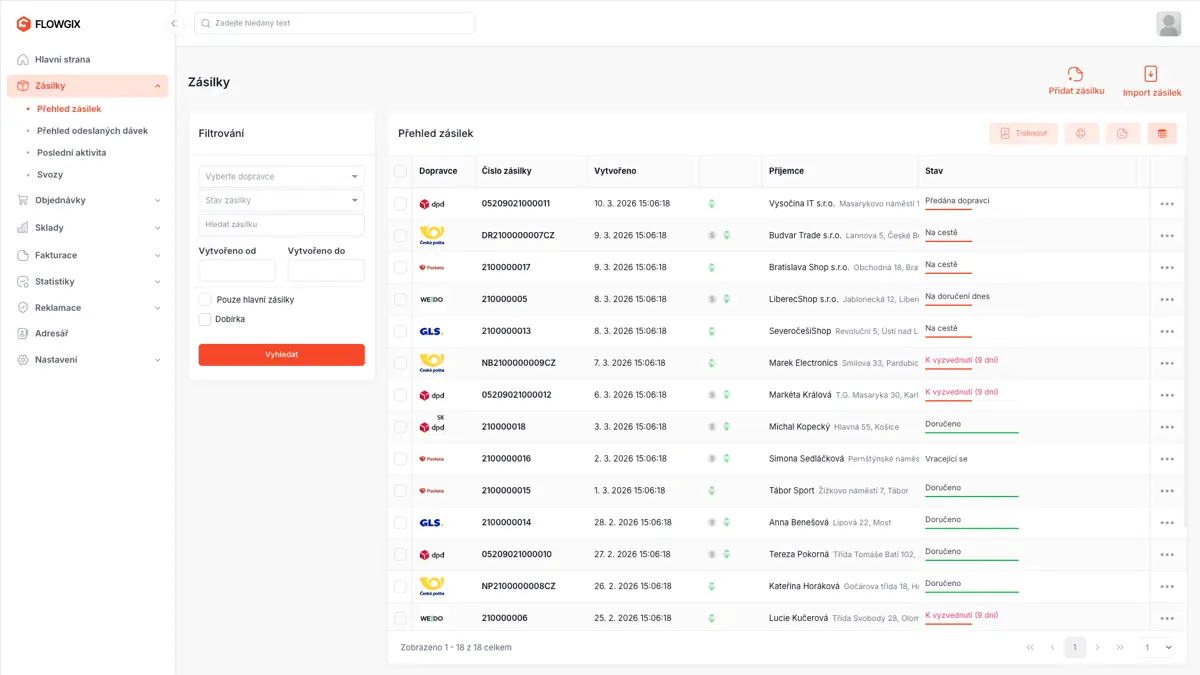Tiskněte štítky, zakládejte zásilky a sledujte jejich doručení – vše přehledně na jednom místě.