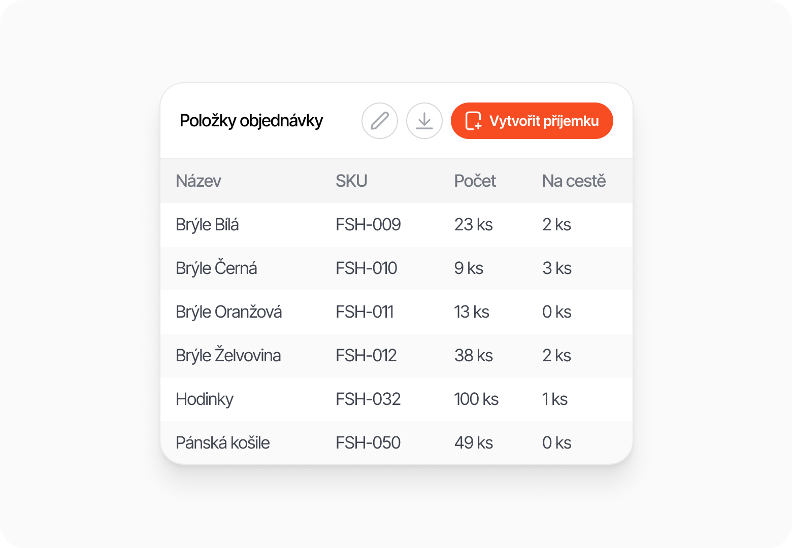 Když vám objednané zboží dorazí, nemusíte manuálně aktualizovat všechny položky. Ve Flowgixu vytvoříte z nákupní objednávky jedním klikem příjemku.